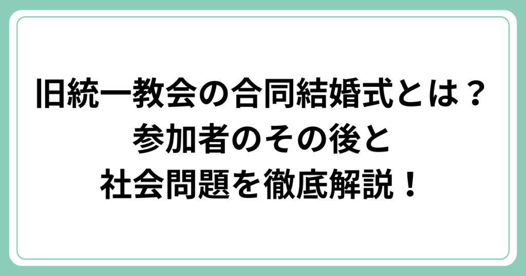 旧統一教会の合同結婚式とは?参加者のその後と社会問題を徹底解説!