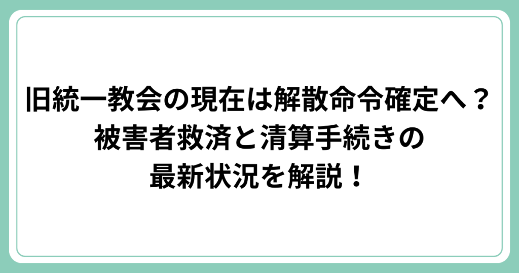 旧統一教会の現在は解散命令確定へ?被害者救済と清算手続きの最新状況を解説!