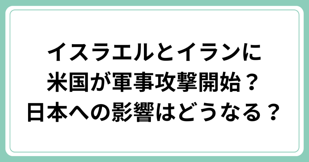 イスラエルとイランに米国が軍事攻撃開始?日本への影響はどうなる?