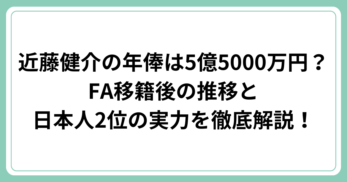 この記事では、近藤健介選手の年俸推移やFA移籍の契約内容、成績との関係性まで徹底解説します。
